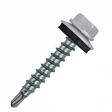 Сверловидный наконечник, головка шестигранная с прессшайбой, резьба с частым шагом. Для защиты от коррозии поверхность оцинкована. Комплектуется стальной оцинкованной шайбой с герметизирующей прокладкой из неопрена или EPDM (мономер этилен-пропилен-диена). Прокладка из EPDM надежно герметизирует пространство вокруг отверстия, просверленного саморезом в закрепляемом элементе, исключая возможность попадания влаги в место соед-я самореза с закрепляемым элементом. Прокладка сохраняет эластичность и способность воспринимать термические деформации крепежной системы, не нарушая герметичность соединения прокладки.Саморезы диаметром 5,5 мм и 6,3 мм со сверлом PT3 используются для крепления кровельных металлических листов к металлической подконструкции толщиной соответственно 5 и 6 мм. , для крепления кровельных металлических листов к металлической подконструкции толщиной до 12,5 мм.