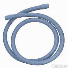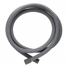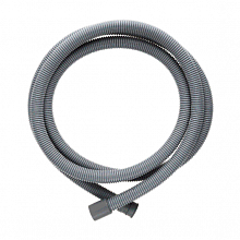 - Для слива (сливной). Основная задача данного типа подвода заключается в отведении воды из барабана стиральной машины. Эти изделия изготавливаются на основе полипропилена и комплектуются фитингами для соединения к системе. Обычно сливной патрубок идет в комплекте с бытовой техникой, но в случае его поломки или повреждения всегда есть возможность приобрести новый. Стандартная длина изделия варьируется от 1 до 5 метров, поэтому важно учитывать расстояние от стиралки до точки слива. Шланг можно соединить с канализационной трубой посредством сифонной крышки. Для надежного крепления рекомендуется приобрести держатель, который предотвратит случайное выскакивание патрубка во время сброса воды под давлением.