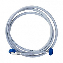 - Для подачи воды (заливной). Используется для подключения стиральной машины к водопроводным трубам. Качество данного изделия напрямую влияет на герметичность всей системы и удобство её использования. Заливные патрубки изготавливаются из поливинилхлорида (ПВХ). Для увеличения прочности некоторые производители армируют материал или добавляют нейлоновую оплетку. Однако обычный подвод также выдерживает стандартное давление. На концах изделия располагаются соединительные детали из пластика. В области гаек должны находиться прессованные металлические гильзы, которые гарантируют надежность соединения. При установке изделия рекомендуется закручивать пластиковые гайки вручную, избегая использования ключа. Металлические инструменты могут привести к повреждению пластика.